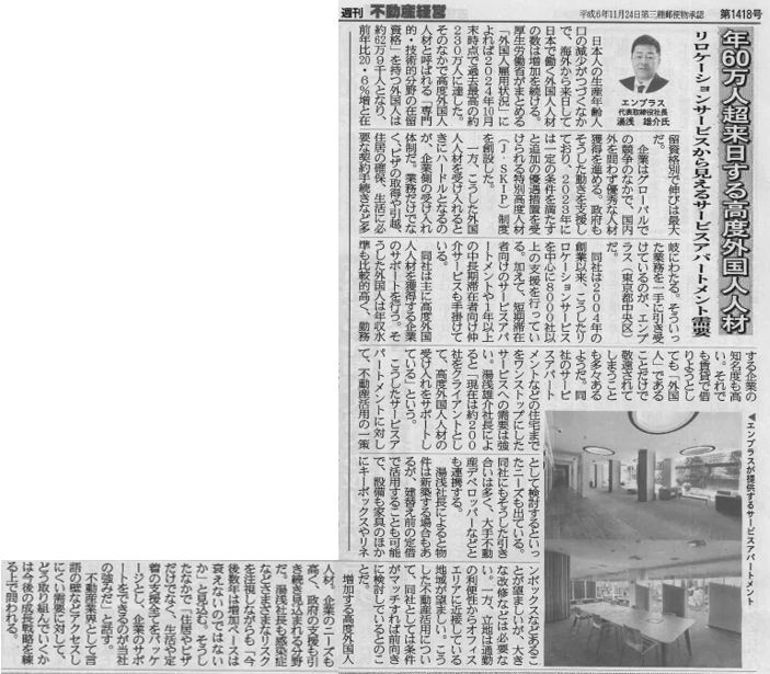 掲載誌:週刊不動産経営(株式会社不動産経営ジャーナル社発行)